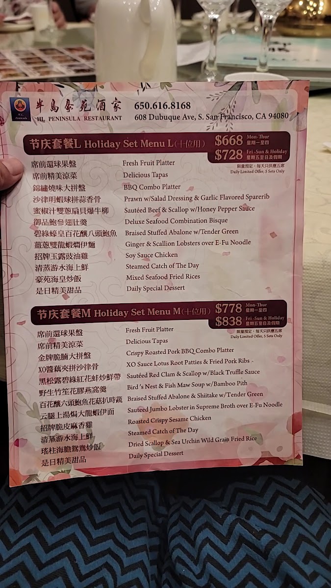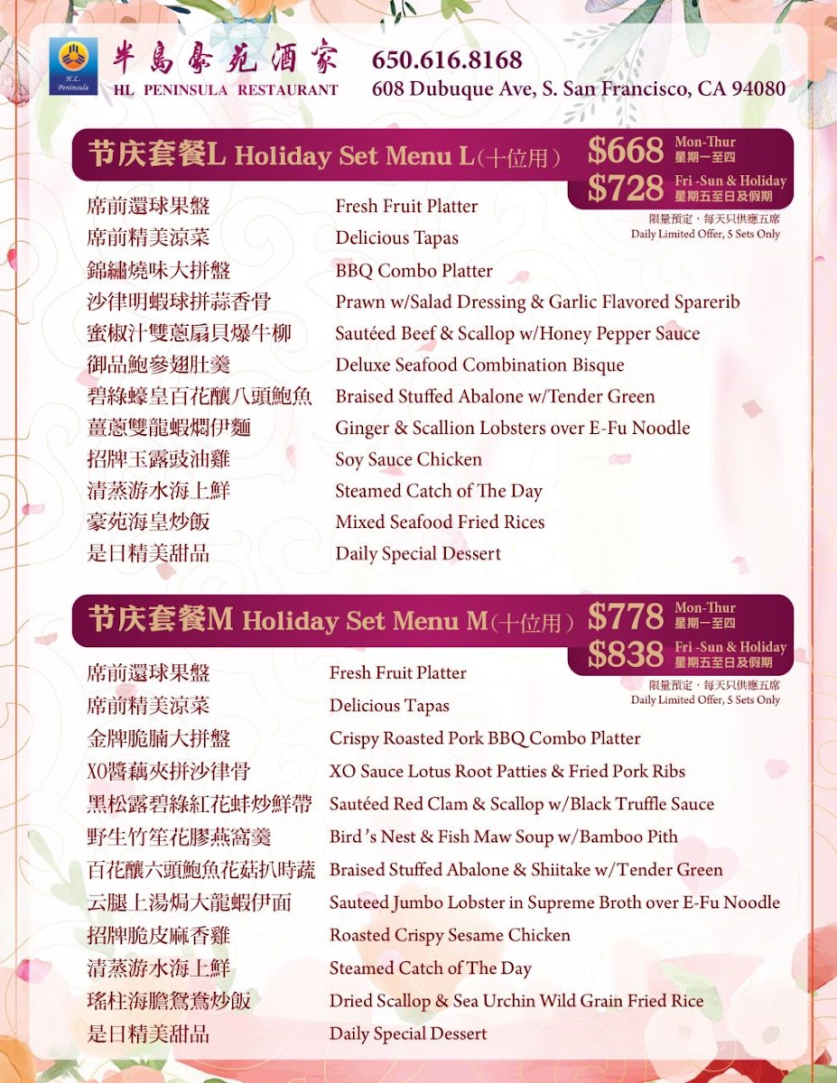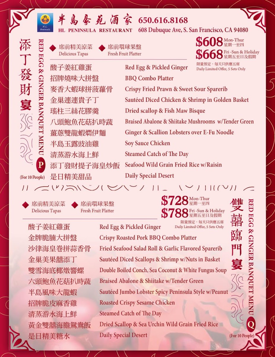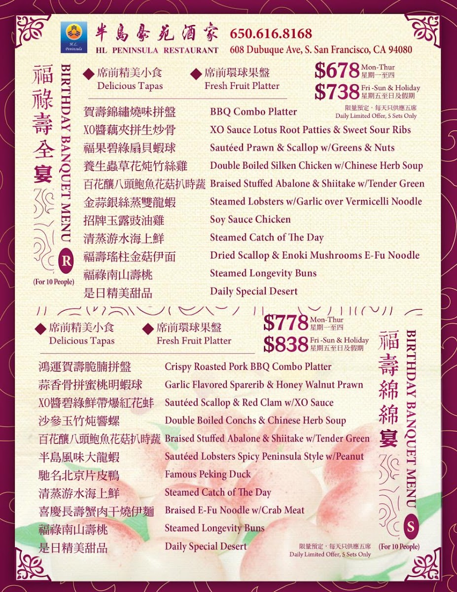H. L. Peninsula Restaurant Menu